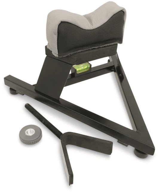 2 units in 1: Sighting and Cleaning Rest! "At home on the range..." Here's the unit you need to zero in your scope to hair-splitting accuracy in 5 shots or less. Has 4-point leveling, adjustable front and forend vise, and includes one forend strap.Precision front elevation assembly. Welded steel construction. Padded support adjusts up to 21" long to fit any length gun. Cleaning? Sure thing. Weighs 9 lbs., 11 ozs. Gun and scope not included.Order precision ONLINE today!