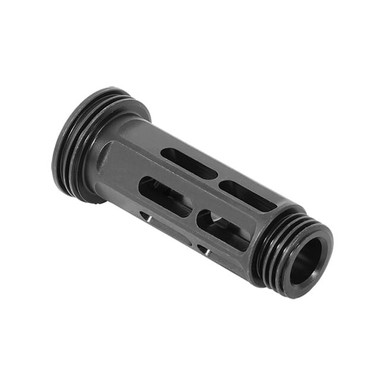 The HELIX 7.62 IFM7 suppressor is an integrated flush mount system that regulates backpressure and reduces sound and flash signature in a single unit while offering greater modularity for use on multiple rifles. Built with titanium, stainless steel, aluminum and cobalt, the HELIX 7.62 IFM7 suppressor delivers effective strength to weight. The IFM7 also include a separate mounting device - the STS-Muzzle Brake. And with the purchase of additional STS-Muzzle Brakes in various calibers and thread patterns,, the IFM7 can be quickly switched between your guns. Just thread the IFM7 onto the STS-Muzzle Brake, hand tighten and you're ready to shoot. The self-tightening desi Mfg: Operators Suppressor Systems