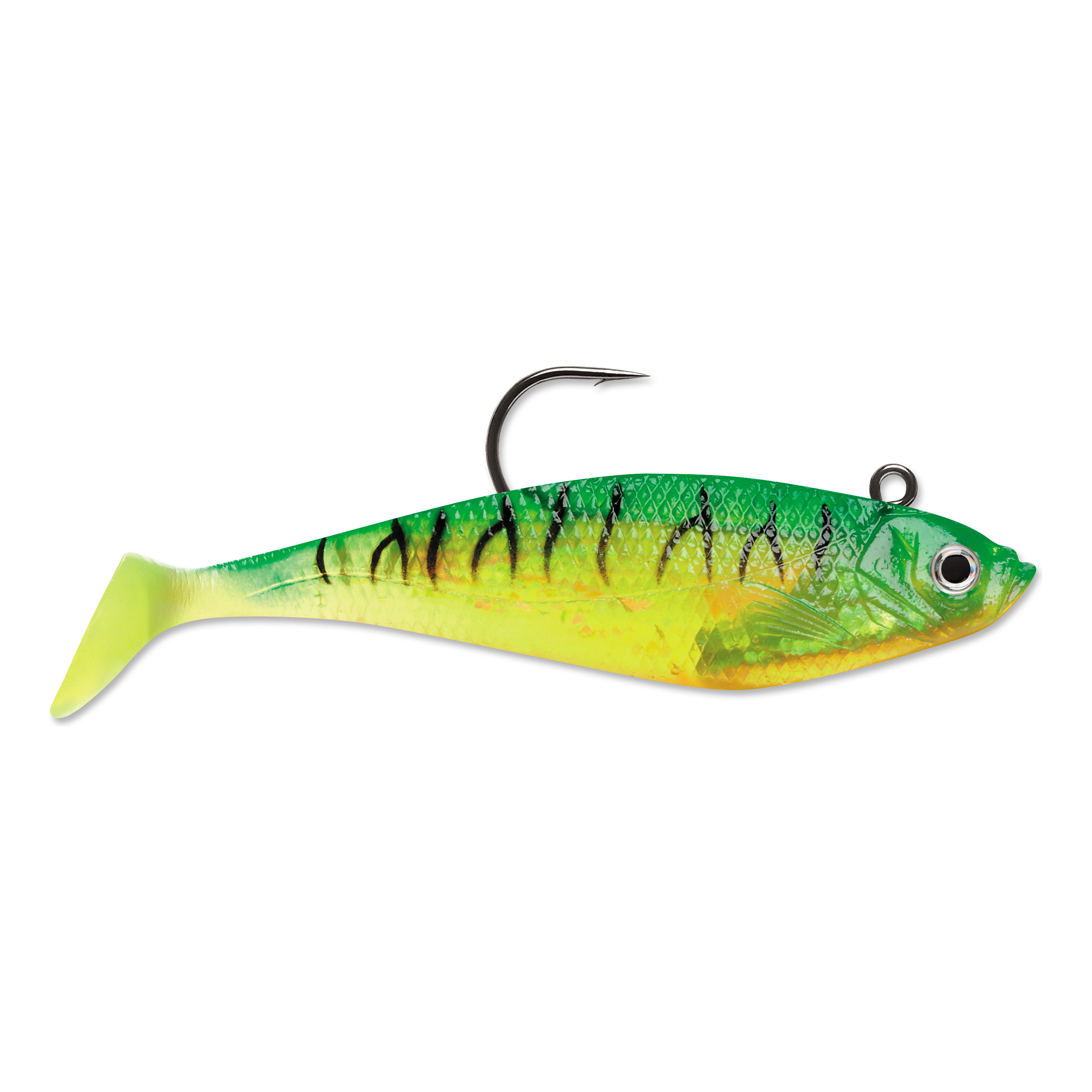 Product Features Natural color patterns & shapes Holographic 3-D WildEye Life-like swimming action Holographic swimmin' flash foil Tough, yet soft outer body Weighted internally, for ideal swimming action