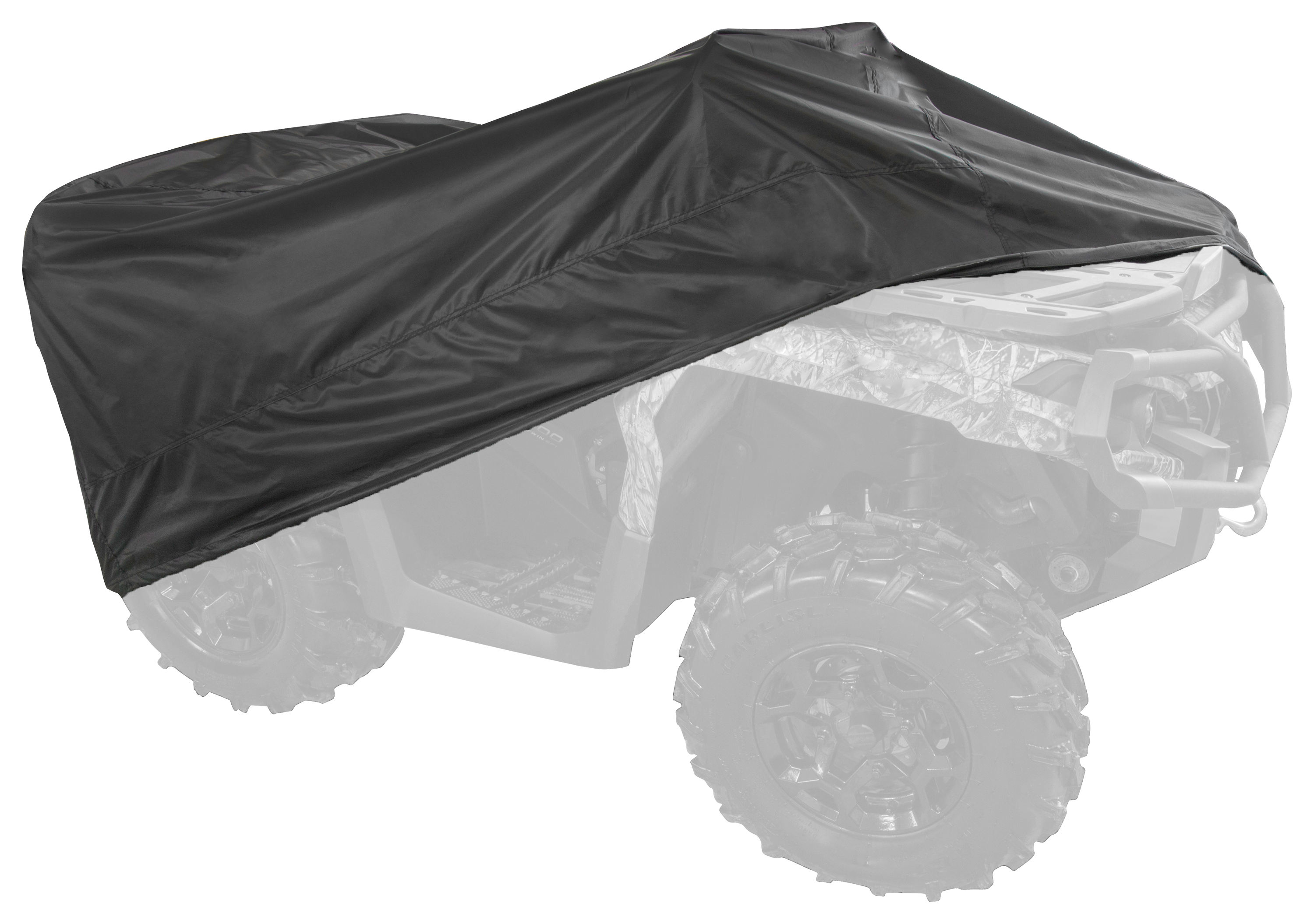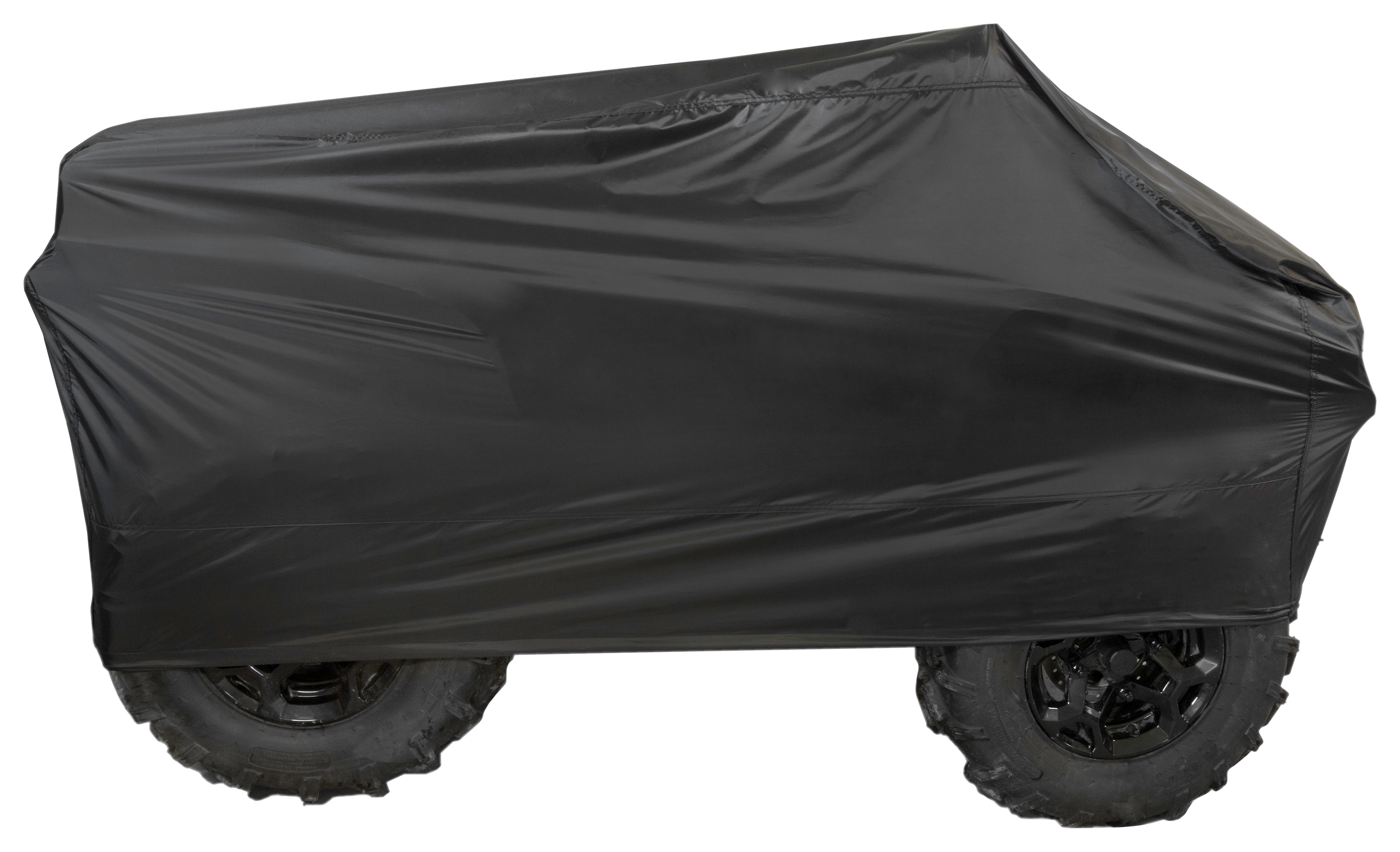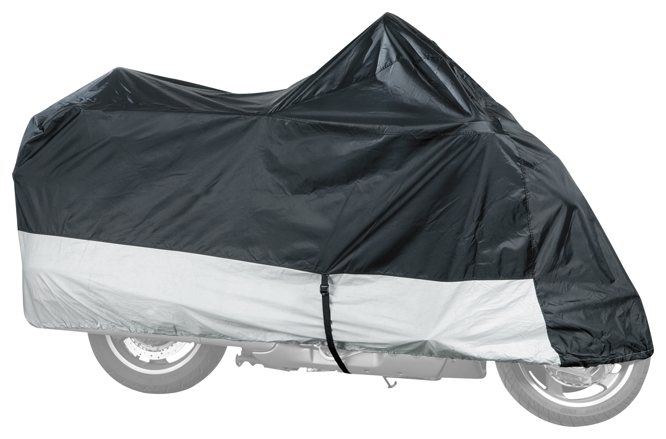 The Raider DT Series Premium Motorcycle Cover boasts dedicated engineering to meet your high standards as true powersports enthusiasts. Armed with Raider-certified premium polyester weather-protective fabric, this Raider cover will surely keep your machine in shielded condition for years to come. Deluxe sewn-in shock cords allow adjustment for a snug fit, while air ventilation helps to reduce moisture buildup. Adjustable hold-downs and towing straps allow extra security and stay-put protection for convenience and peace of mind when trailering. Includes handy storage bag. Mfrs. 3-year limited warranty. Premium heavy-duty polyester fabric construction Water-, mildew-, and UV-resistant Double-sewn reinforced seams at all stress points Deluxe sewn-in shock cords Air ventilation pods Adjustable towing straps