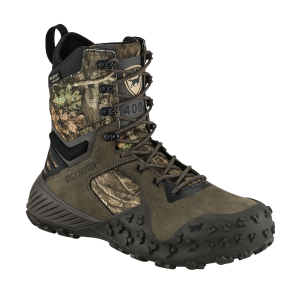 Elevate your hunting experience with the VaprTrek Camo Leather Waterproof Hunting Boots for Men from Irish Setter. Packed with performance-enhancing improvements, these high-performance men's hunting boots provide superior support, stability, and durability from an ultralightweight boot. Made of Irish Setter's extra-durable Trout Brook leather, the waterproof nubuck leather uppers feature Armatec XT abrasion-resistant toe and heel panels for even greater durability. Inside, UltraDry waterproof/breathable technology, mesh linings, and odor-controlling ScentBan treatments keep feet dry, fresh, and comfortable. This fast, light, and athletic design gives hunters top-level support and comfort under the feet, starting with its cushioning, shock-absorbing polyurethane/memory foam footbeds and dual-density midsoles with high rebound EnerG EVA compound. Lightweight nylon shanks help the boot provide a stable base under the feet. Made of an ultralightweight composite material, the RPM R-ZONE outsoles provide the durability, strength, and grip of a traditional outsole over rough terrain without the weight. The advanced outsoles on the VaprTrek camo men's hunting boots from Irish Setter utilize a bidirectional lug pattern for increased traction and balance during heel strike and toe-off, along with a wraparound instep section for increased protection and a better grip on tree-stand rungs, ATV footholds, and more. CuShin Comfort tongue. Average Height: 8".Manufacturer style #: A2815. Proven hunting boot performance without the weight Waterproof nubuck leather uppers made of Irish Setter's ultra-durable Trout Brook leather Armatec XT heel and toe protection Waterproof/breathable UltraDry technology ScentBan odor-controlling treatments Cushioning polyurethane/memory foam footbeds Shock absorbing, dual-density midsoles with high rebound EnerG EVA compound Lightweight nylon shanks Ultralight RPM R-Zone outsoles for faster maneuverability and greater comfort Bidirectional lug pattern for increased traction and balance Instep protection grips tree stand rungs and ATV footholds better CuShin Comfort Tongues minimize pressure on shin