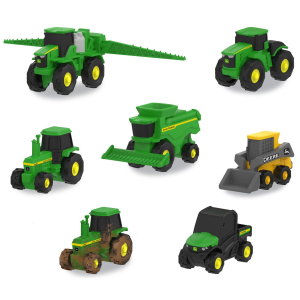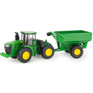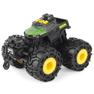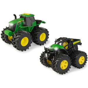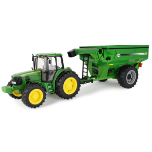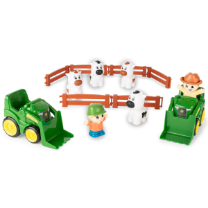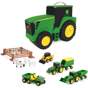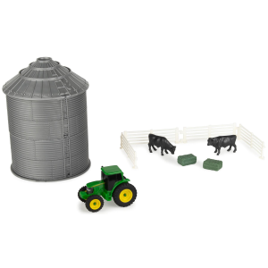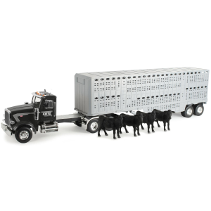 Kids will have hours of fun loading and unloading cattle from the Cattle Trailer and Freightliner 122SD Semi. The 1: 32 scale trailer includes the essentials for any little one to transport their cattle from farm to farm: featuring an opening door, easy connect hitch, and working trailer stand. The eight included cattle can be easily loaded and unloaded from the trailer, adding extra play value and over the MOOn fun! Hauling fun for ages three and up. | Tomy Freightliner 1:32 Scale 122SD Semi with Cattle Trailer and 8 Toy Cows Toy