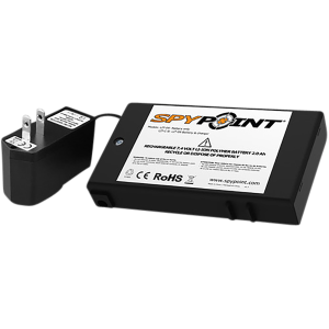 Energize your Spypoint trail camera effortlessly with the Rechargeable Lithium Battery Pack and Charger. This power pack, rated at 7.4V and 2,000mAh, offers exceptional longevity, lasting up to three times longer than its alkaline battery counterpart. The included AC charger is equipped with an indicator light, providing a clear signal when the pack has reached a full charge.