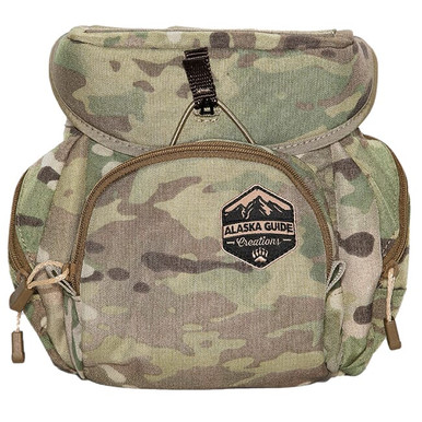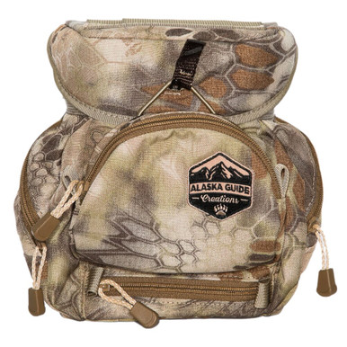 The Alaska Guide Creations Ravus Pocket is a stand alone zippered pocket that can be attached to any belt, bino harness, backpack, etc. However, it was designed to attach the Front (top facing zipper) or Bottom (forward facing zipper) of the Ravus Bino Pack. The pocket features dual zippers that make it ideal for right and left handed users. The bottom of the Ravus Pocket features a laser cut panel that allows for additional attachment of accessories when mounted in either location. The Ravus Pocket measures 1.5-inches tall x 6-inches wide x 3.25-inches deep and is perfect for storing small, handheld rangefinders, a light pair of gloves, headlamp, Outdoor Edge knife and blades, or any other small necessities. Alaska Guide Creations Foilage Ravis Side Pocket RSP-FOL
