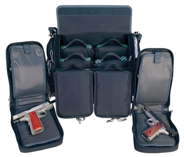 GPS Barn Range Bag - PRYM1 Blackout - The Barn Range Bag features 8 individual pistol cases with storage for four (4) magazines each. Four of the cases will fit your full size/medium handguns and the other four will fit compact models. It has a visual ID storage system, hard-sided case for shooting glasses, and a lockable heavy-duty zippers. The Barn also utilizes a heavy-duty riveted handle and carry strap, and includes a pull-out rain cover.