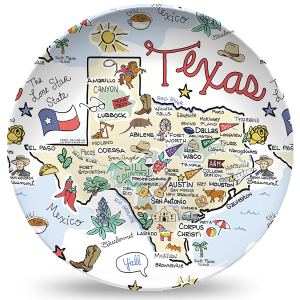 Enjoy Texas in every meal with the Texas Map Bowl, featuring your favorite state artwork on a versatile 8.5" x 1.3" deep bowl. Made from a revolutionary, plastic-like material, this bowl is microwave safe and oven-friendly for both convection and conventional cooking. Dishwasher-safe for commercial and residential use, it's BPA-free and contains no melamine or formaldehyde, making it a safe, durable, and stylish choice for serving soups, salads, snacks, and more while celebrating your love for Texas. | Fishkiss Texas Map Bowl | Size 8.5"