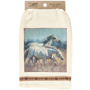 A 20 oz stainless steel water bottle from the Western Collection displaying a hand painted scene of running horses. The Running Horses sport bottle is insulated to keep beverages cold for 12 hours and hot for 6 hours. Insulated water bottle includes an easy to open lid with built-in straw and strap making it easy to carry. Hand-wash only. A western-themed accessory perfect for on-the-go. | Primitives by Kathy Running Horses Sport Water Bottle | Size 20 oz