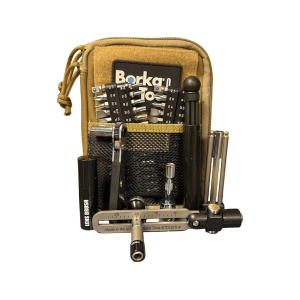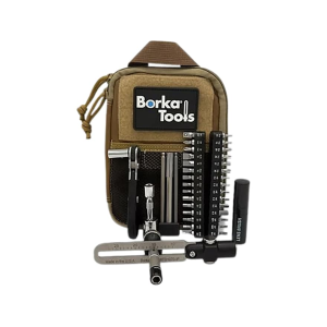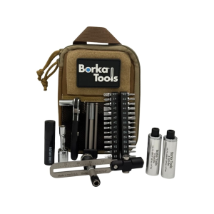 The Borka BTK-E5 is the ultimate field service kit. It combines the full versatility of the Extended Configuration (BTK-E1) with the added security of a compact, modular Emergency Cleaning Rod (ECR)- a must-have tool for rapid obstruction removal and quick bore maintenance in the field or at the range. Every BTK-E5 includes all the components of the BTK-E1, plus the premium Borka/Pro-Shot Emergency Cleaning Rod. IncludesBTD1070-IP Adjustable Torque DriverCompact Ratchet Handle - 1/4" hex (F) x 1/4" square drive (M)1/4" hex drive (F) to 1/4" square drive (F) adapter1/4" hex drive (M) to 1/4" square drive (M) adapter2" extension with 1/4" square drive (M and F) ends4" long bit extension (0.4" O.D. max)Extended-Length Custom Bits5/32" ball-end hex 4" long bit3/16" ball-end hex 4" long bit (Universal AICS bit)Premium S2 Tool Steel Chrome-Plated Bits (29 total)Hex, Inch: 3/32, 7/64, 1/8, 9/64, 5/32, 3/16Hex, Metric: 2, 2.5, 3, 4, 5, 6Slotted: 1/8, 5/32, 3/16, 7/32, 1/4, 5/16Torx: T-10, T...