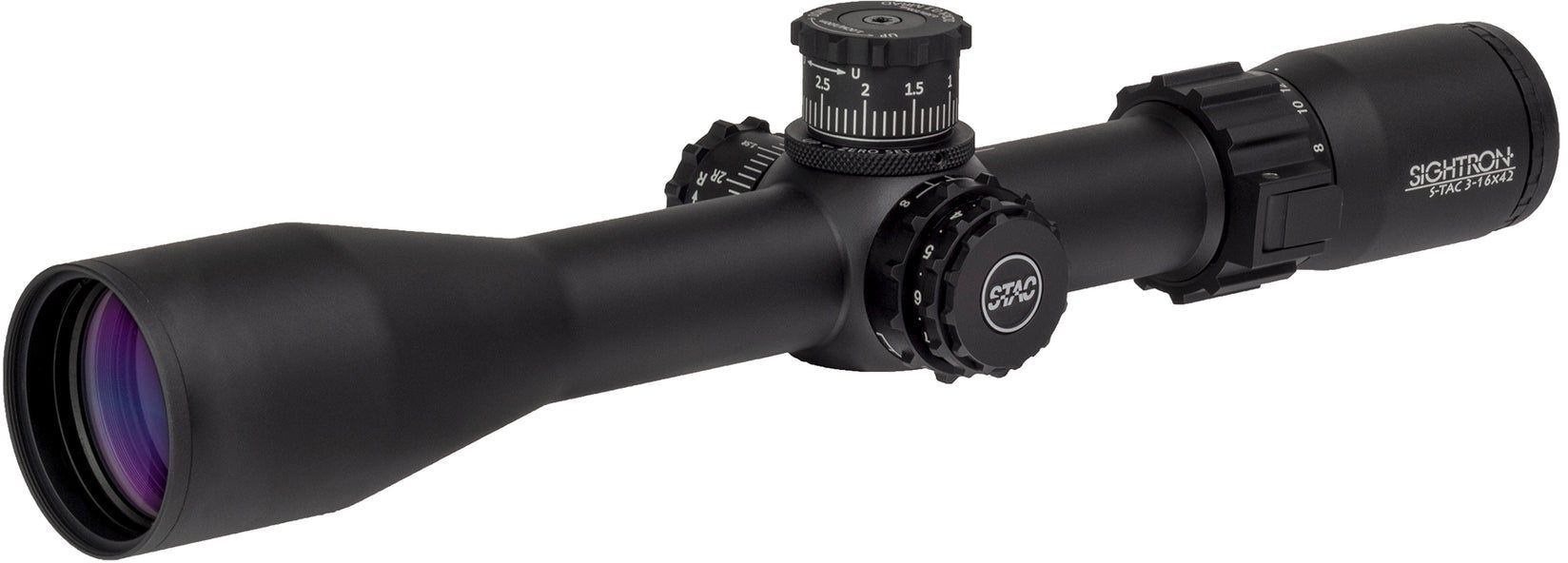 "Designed for long range target shooting and hunting, the Sightron SIII Precision Long-Range Rifle Scope provides premium performance in an affordable package. The large oversized tactical knobs adjust easily in any weather conditions and are resettable to zero. The new internal zero-stop mechanism provides a tactile and audible positive stop for dead-on zero setting. Windage knob is marked for left and right to eliminate second guessing when adjusting. Never experience drift with Sightron's patented ExacTrack windage and elevation adjustment technology. It provides proper alignment between the adjustments and the erector tube by maintaining the same constant and accurate point of pressure at zero or extreme adjustments. Using the right materials for the right application, Sightron engineers build optical formulas around the best optical glass to reduce chromatic aberrations, improve color accuracy, deliver excellent light transmission, and best-in-class resolution and sharpness. Exclusive Zact-7 Revcoat multi-coating process employs revolutionary lens coating technology on both surfaces of the lenses for maximum anti-reflection performance and the high light transmission. The side focus knob will focus from 20 yards to infinity. Second focal-plane reticle ensures reticle size remains constant at any zoom range. All reticles in this series are illuminated with a side-mounted 11-position off/on rotary type dial powered by an included CR2032 battery. The side-mounted focus system has been redesigned for improved minimum focus performance. The 30mm body tube is waterproof (IPX7-rated), shockproof and nitrogen-charged for fog-proof performance. Sightron SIII Precision Long-Range rifle scope includes 3"" sunshade, flip-up lens covers, and Torx key and Allen wrench for knob and zero stop adjustments. Mfrs. lifetime warranty. Precision tactical turrets with internal zero stop 11 position off/on side mounted illumination dial Zact-7 Revcoat Plus Multi-coating for superior light transmission ExacTrack windage and elevation adjustment technology Side focus knob Shock-, fog-, and waterproof construction Large oversized tactical knobs"