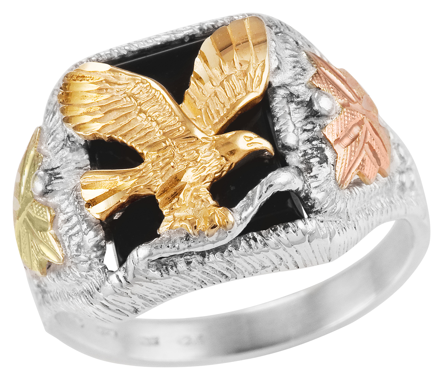 "All of the jewelry from the Mt. Rushmore Black Hills Gold collection, including the Sterling Silver Horseshoe Pendant Necklace, has been handcrafted with meticulous attention to detail. Their experienced craftspeople have infused these pieces with eye-catching designs and an overall look of high-end refinement and timeless beauty. This women's necklace features a sterling silver pendant that is decorated with a beautiful rose- and green-colored leaves made of 12k gold; this gold's distinct colors and look are entirely unique to the South Dakota, Black Hills area. This Mt. Rushmore pendant is showcased on a complimentary 18"" sterling silver chain. Pendant: .42""H x .39""W. Manufacturer style #: MRSD20317. Handcrafted with meticulous attention to detail High-end refinement and timeless beauty Gorgeous sterling silver pendant Decorated with 12k-gold rose and green leaves Gold colors are unique to the Black Hills area 18"" sterling silver chain"