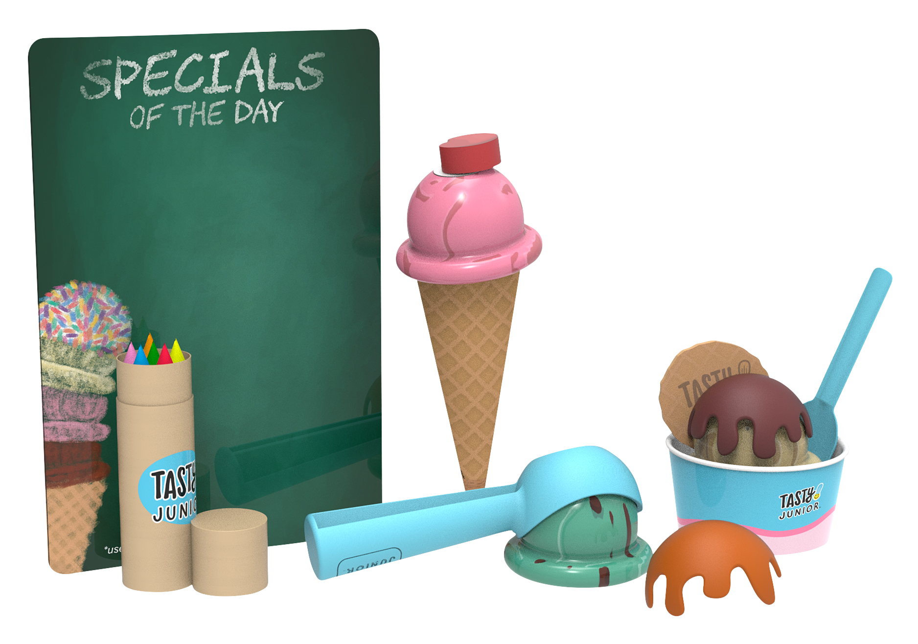 "Introduce the world of culinary creativity to your young chefs with the Tasty Junior Electric Mixer Set. This vibrant, safe playset makes the joy of blending accessible to little hands. Take pretend play to the next level with realistic sounds, light, movement, and interactive features. Remove the ""blades"" for manual mixing, or recreate electric blending for endless adventures in culinary make-believe. Runs on 2 AA batteries (included). For ages 3+. Imported.Manufacturer model #: RP8027-TS. Take pretend play to the next level Realistic sounds, light, movement, and interactive features Removable ""blades"""
