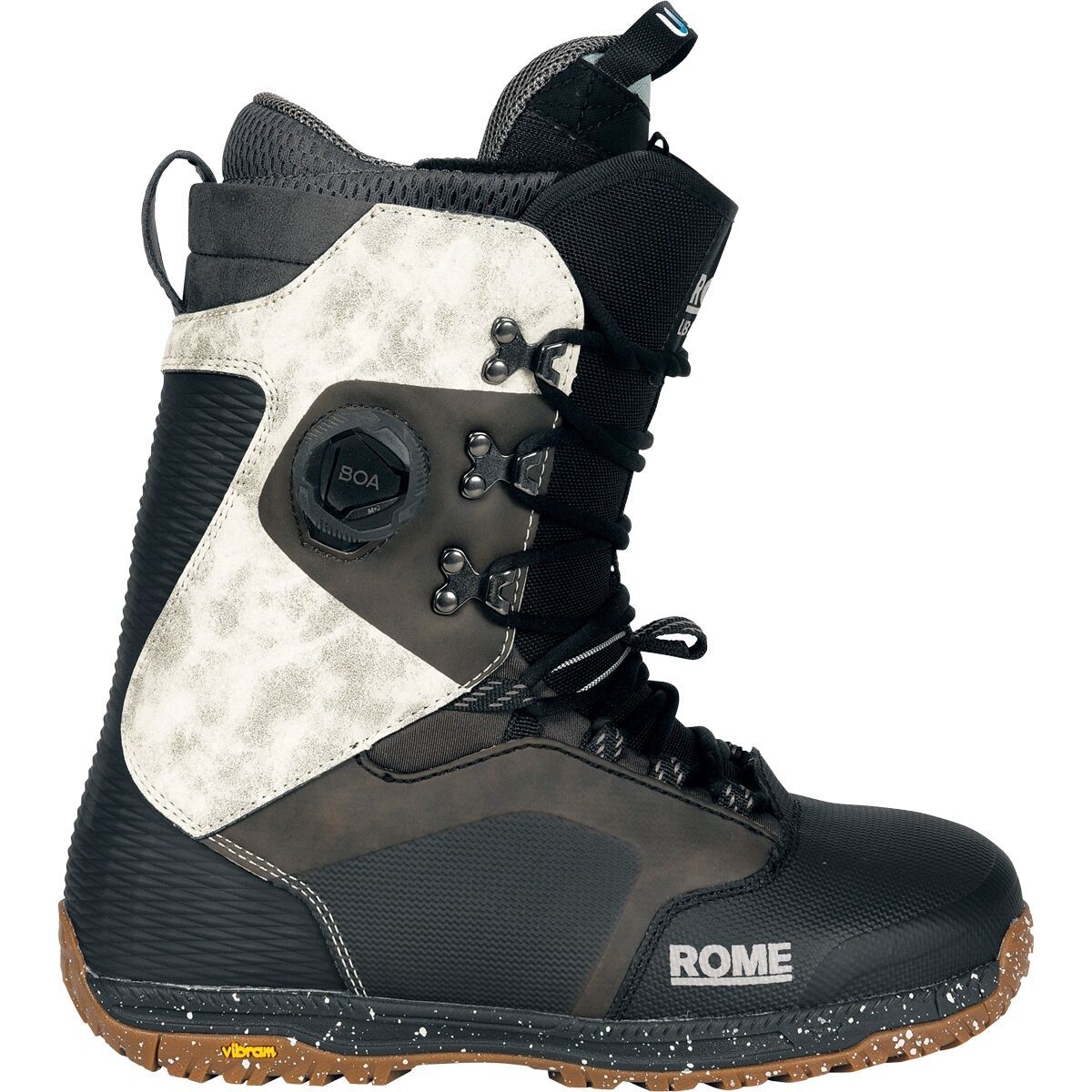 Rome engineered the 2024 Bodega Hybrid BOA Snowboard Boot for riders looking for premium performance all over the mountain. The mid-level flex offers support when we're blasting down groomers, but also enough give to butter and jib to our heart's content. The traditional lacing allows us to dial in the ideal fit, while the BOA Fit System backs it up by securing the foot and reducing heel lift when carving in and out of the trees.
