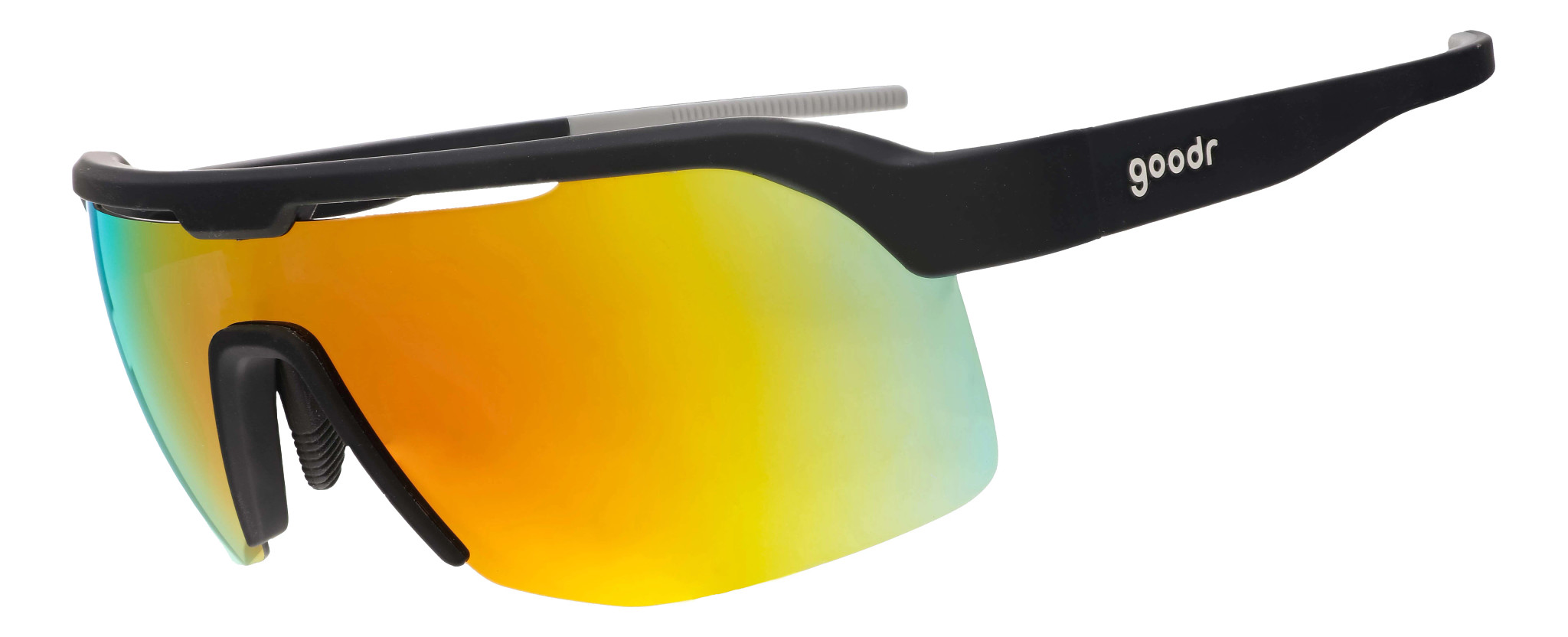 Although they're made for running, biking, and hiking, you'll look more like you're ready to party in your goodr Electric Dinotopia Carnival OG frame sunglasses. A grippy coating on the frame helps eliminate slippage no matter how you're getting your sweat on. In teal and purple, these beauties are guaranteed to make any workout (or party) more fun.