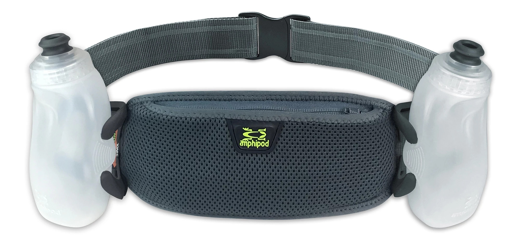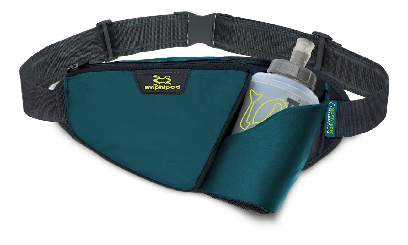 Hit the trails running, always keeping your hydration close and convenient with the Amphipod Profile-Lite Trail Runner 32 ounce hydration belt. Get ample carrying capacity for going the distance with the two 16 ounce bottles, and make sure your sips are quick and easy with the NEW Jett Lock Caps™ and single handed bottle access. You're sure to feel ultra comfy in this lightweight belt that's contoured to fit you like a glove, and it features strategically placed cushioning plus bounce-free performance, too. Plus, you'll even get added stay-seen safety running after dark in the Profile-Lite Trail Runner 32 ounce, compliments of the reflective detailing.