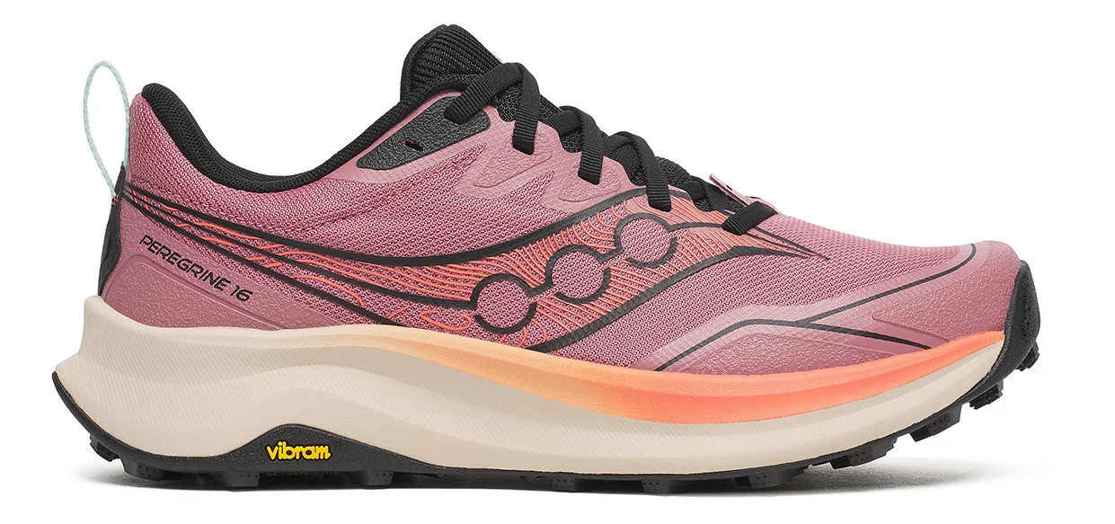 Conquer any terrain with your Men's Saucony Peregrine 16, now reimagined for even more grip, comfort, and protection. The trail-ready upper features specialized high-strength mesh with reinforced abrasion zones and an integrated D-ring for gaiter compatibility. A PWRRUN foam midsole provides softer, more responsive cushioning than before, while added foam underfoot boosts all-day comfort on rugged trails. The new Vibram® Megagrip outsole delivers superior traction and durability on wet or rocky surfaces. Lighter, tougher, and smoother than the Peregrine 15, this update keeps you confidently moving wherever the trail leads.