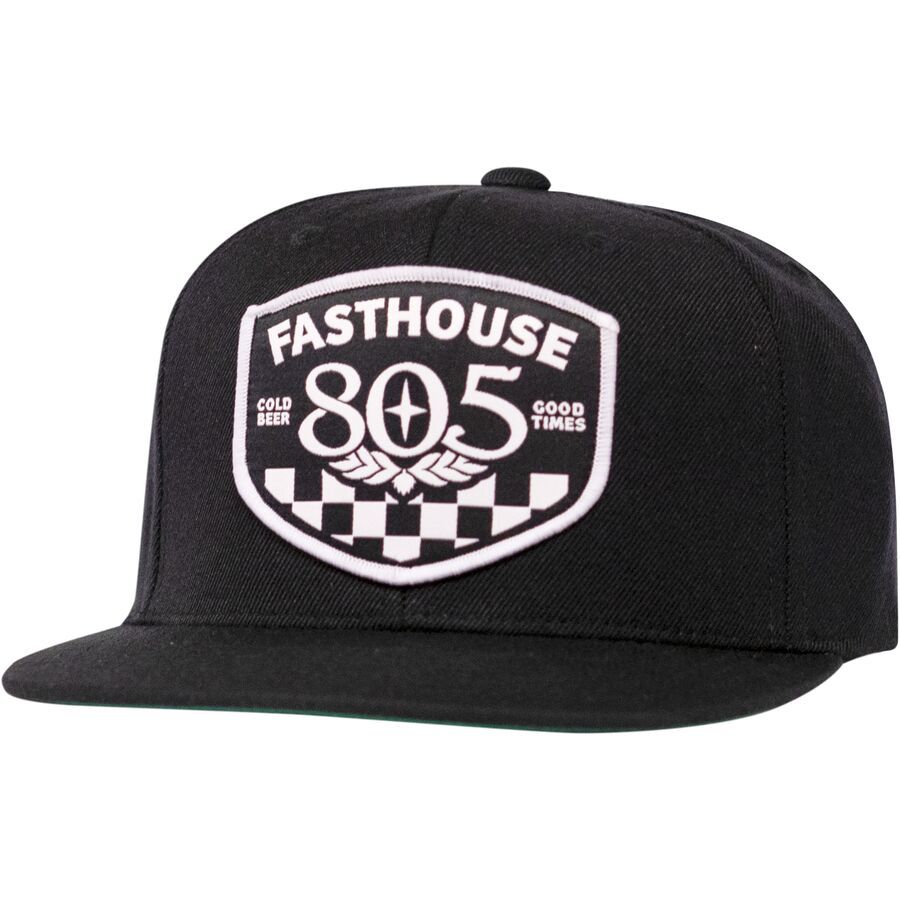 805 Motor Club Hat. Join the crew with the Fasthouse 805 Motor Club Hat, a nod to good times, open roads, and the community that keeps the wheels turning. Built as a high-profile, structured five-panel snapback, this hat delivers a confident look with a comfortable, dialed-in fit. Made from a premium acrylic and wool blend, it features bold embroidered artwork and custom interior and exterior trims that set it apart from the rest. Finished with classic Fasthouse branding, the 805 Motor Club Hat is an easy grab for rides, hangouts, and everyday wear. Premium 80% acrylic and 20% wool blend construction. High profile structured five-panel snapback design. Embroidered front patch with bold artwork. Side logo embroidery for added detail. Adjustable snapback closure for a custom fit. Branded interior logo taping. One size fits most.