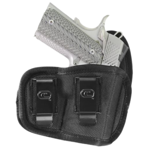 Crossfire holster eclipse low- pro iwb/owb 3"-3.5" nylon rh! FEATURES:3-D technology so holster will not collapseWear IWB using dual exterior pant clipsMemory - type foam laminatre, Molds to the gun providing a custom fitSturdy belt loopsBarrel ramp system1680 denier Ballistic Nylon Other Features: Very low-profile,barrel ramp system,speed retainer for safely securing & fast access, optional spring loaded thumb break,1680 denier nylon memory-type foam laminate process allows holster to take on the shape of firearm for a custom fit,3-d technology will not collapse