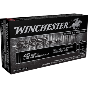 SUP45 Super Suppressed 45ACP Subsonic 230gr Encapsulated Full Metal Jacket 50 Per Box/10 Case Centerfire, Handgun Ammunition