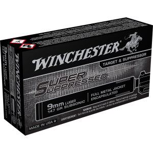 SUP9 Super Suppressed 9mmLuger Subsonic 147gr Encapsulated Full Metal Jacket 50 Per Box/10 Case Centerfire, Handgun Ammunition