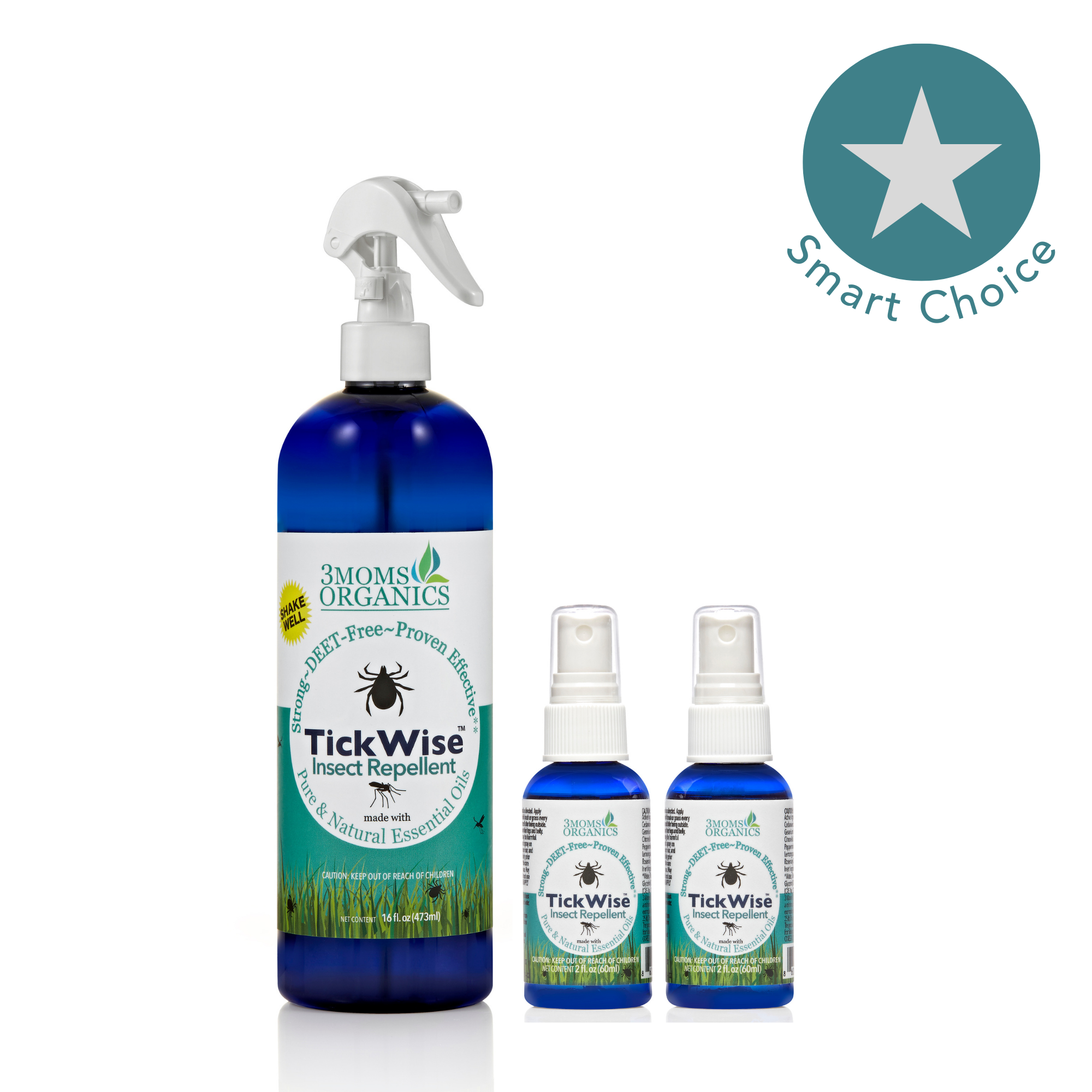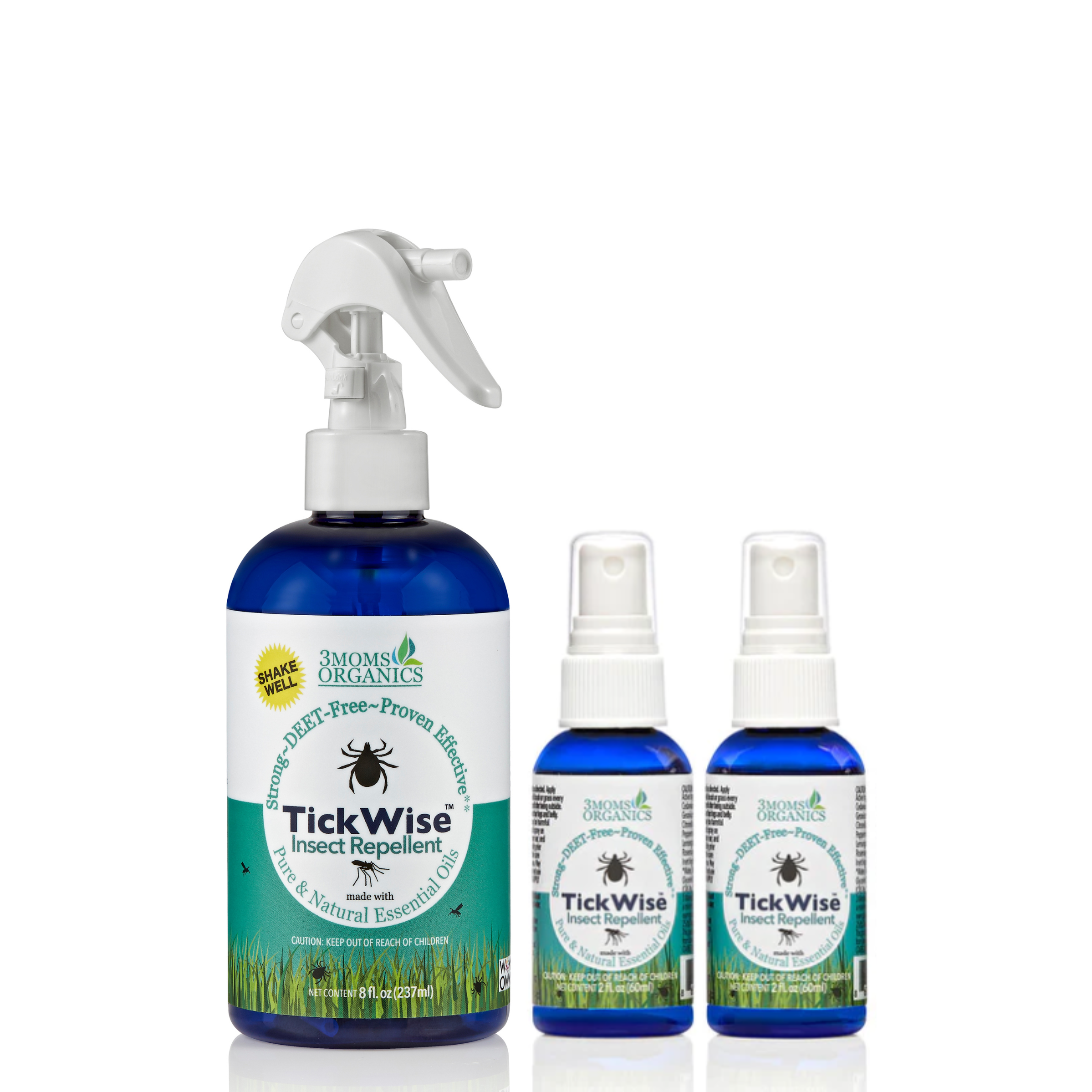 Mosquito & Tick Repellent Spray Bundle, All-Natural Ingredients, Lemon Vanilla Scent (8oz,4oz,2oz)